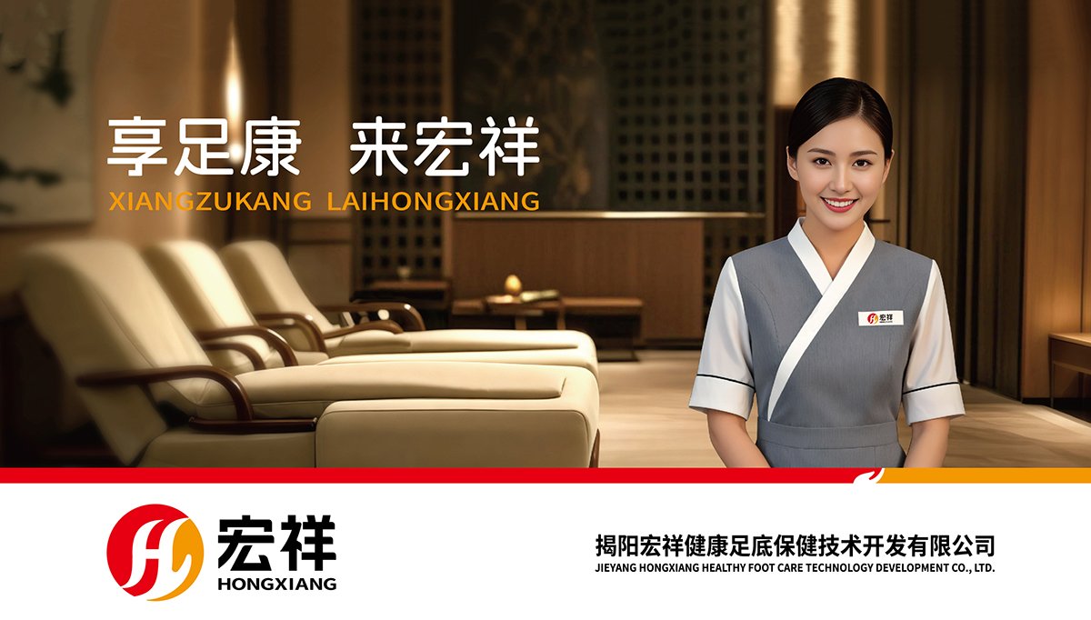 揭阳宏祥健康足底保健技术开发有限公司成立于2017年是一家以专业修脚、脚疾护理、足部保健、按摩养生为一体的综合服务型企业。企业涵盖技师培训,电商直播,同时兼营EVA/PVC塑料拖鞋生产与加工等多个领域为一体的综合型连锁品牌。经市场开拓,目前已完成广东、深圳、湖南、江西等六省二十一个城市的初期战略目标,潮汕地区开启连锁直营门店近100多家。