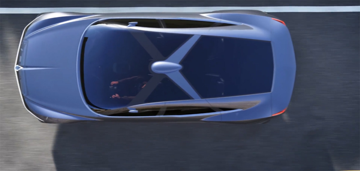 并采用全景式车顶设计,从俯视图来看,居中的LOGO和整体车型融合得非常巧妙,通过延展的线条来形成联系。